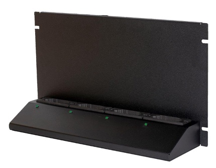 A plate designed to fit a standard 19inch rack. This allows creation of charging walls using open 19 inch system or secure cabinet solutions