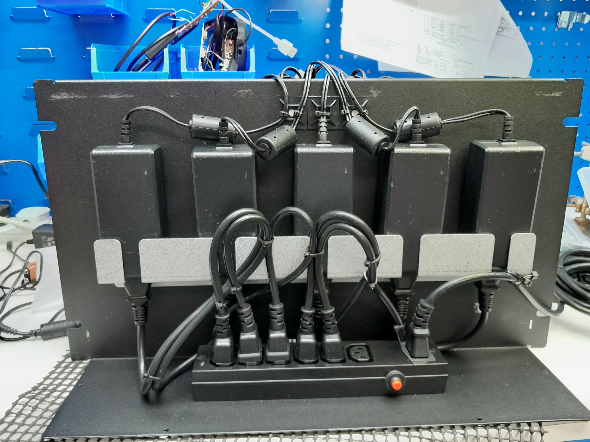 We can offer a plate of 4 or 5 cradles designed to fit a standard 19inch rack. This allows creation of charging walls using open 19 inch system or secure cabinet solutions